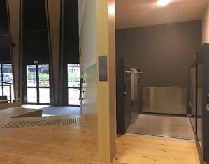 - L’accessibilité de la chaire surélevée de 72 cm a été réalisée avec l’installation d’un monte personne dans un local contigu, garantissant de la discrétion pour la personne handicapée qui doit utiliser cet appareil.
