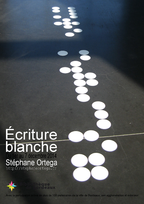 Le 3 décembre 2014, à l’occasion de la journée internationale des personnes handicapées, le projet de Stéphane Ortega « Ecriture Blanche » s’est temporairement installé dans 150 lieux de l’agglomération bordelaise. L’artiste a choisi de contaminer l’espace urbain en diffusant des mots en braille visuel, sous forme de stickers. Lire la suite de « Un dîner dans le noir, une expérience artistique. »